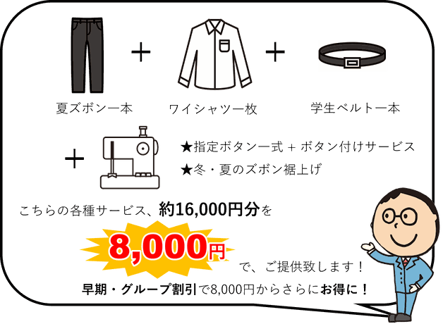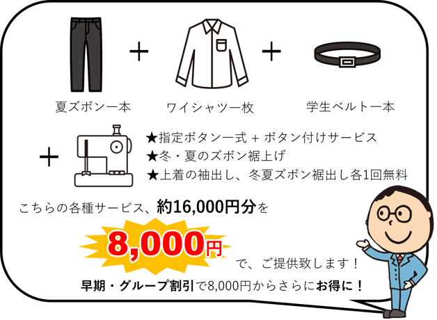 詰襟学生服、セーラー服、イートン服のみとなります。